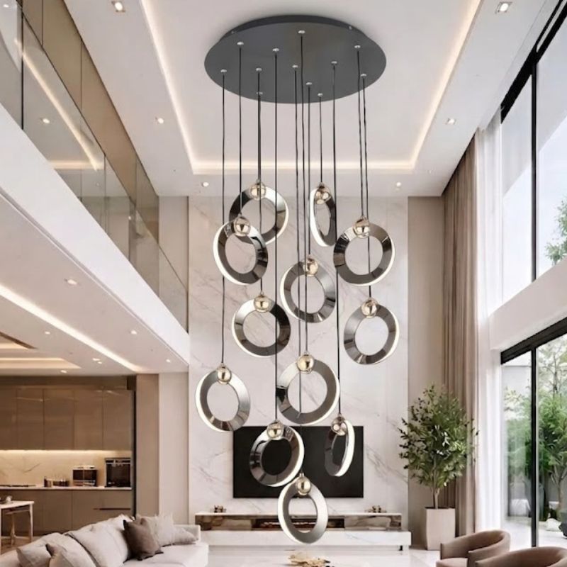 ✅ Khu vực sảnh - thông tầng là vị trí quan trọng, là nơi hội tụ và tạo ra sinh khí lớn nhất với mọi không gian. Một bộ đèn chùm thông tầng đẹp không chỉ cung cấp ánh sáng mà còn giúp trang trí, tạo điểm nhấn và góp phần rất lớn trong việc tạo sinh khí, thu hút tài lộc, bình an tới cho chủ công trình.
